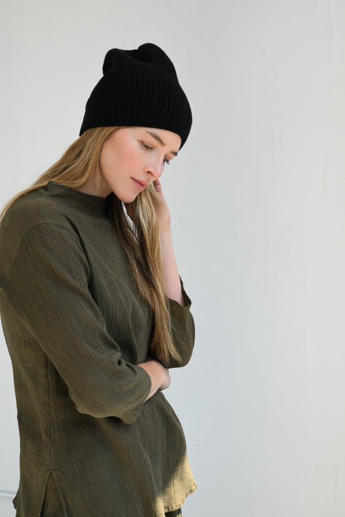 - 100% Cashmere ribbed knit beanie